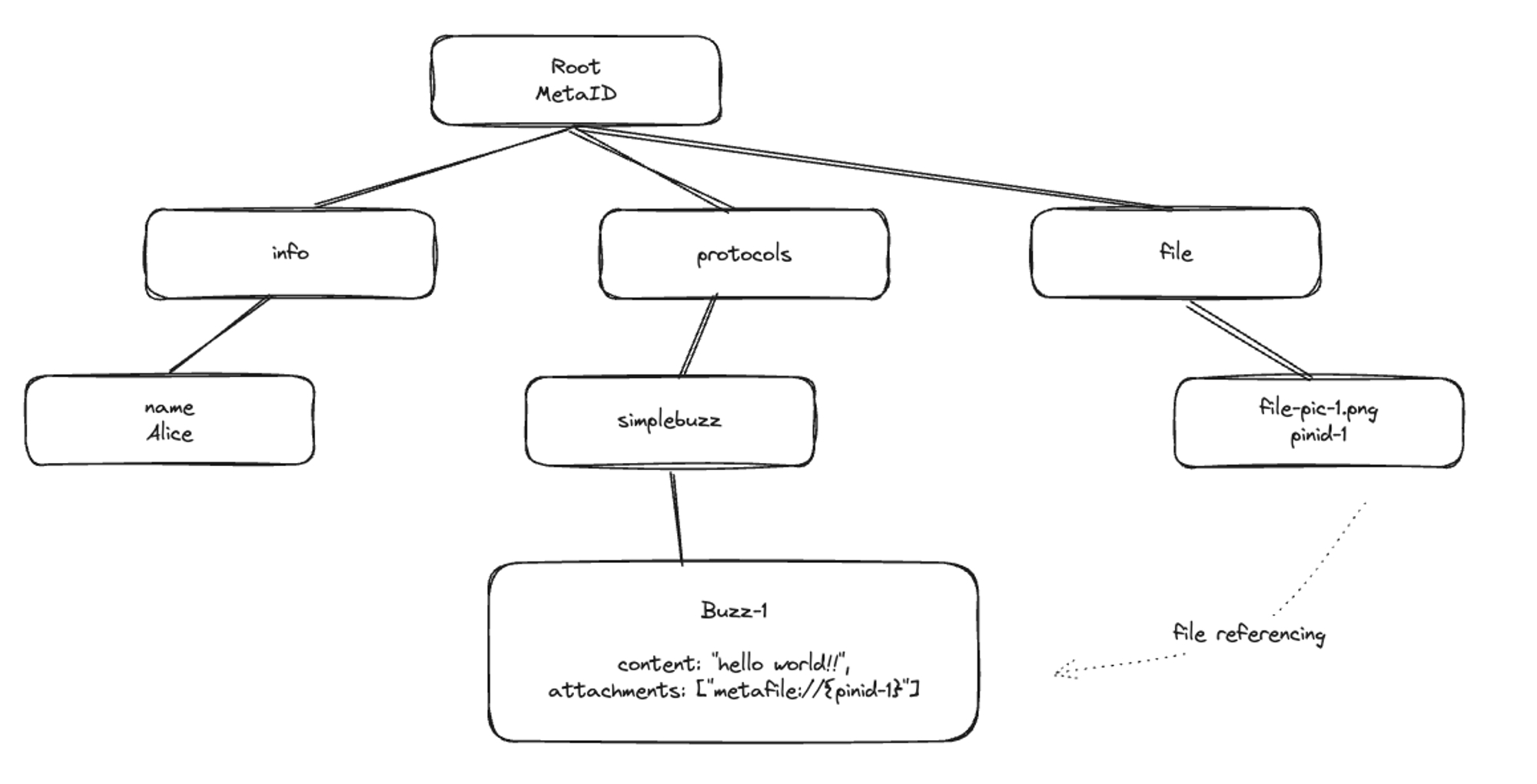 作為存儲路徑,並可通過文件名或子級路徑來進一步區分不同的文件。通過 File 節點的路徑,用戶可以在 MetaID 的樹狀結構中輕鬆地定位和檢索特定的文件 PIN,從而實現對文件的有效組織和管理。