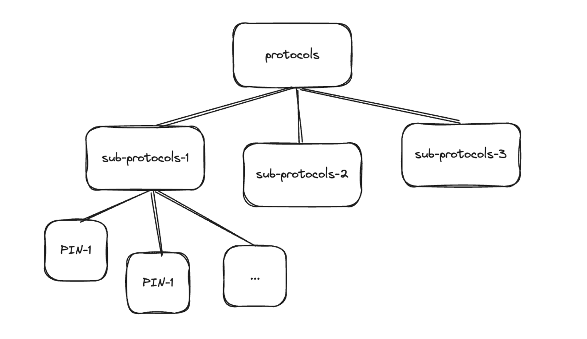 由於 Protocols 的協議是開放的,所有應用方都可以構建自己的協議。每個協議下的結構由協議制定方/應用方自己決定,但需保證協議節點的標識具有唯一性。